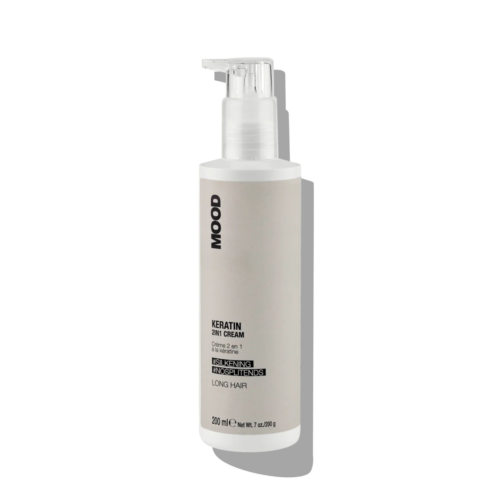 NAUDOJIMAS: Tolygiai tepkite po MOOD KERATIN LONG šampūno, palaikykite 2–5 minutes ir nuskalaukite. ARBA – storiems ar chemiškai paveiktiems plaukams – tepkite ant plaukų ilgių po MOOD KERATIN LONG kaukės, nenuskalaukite ir formuokite kaip įprasta.
